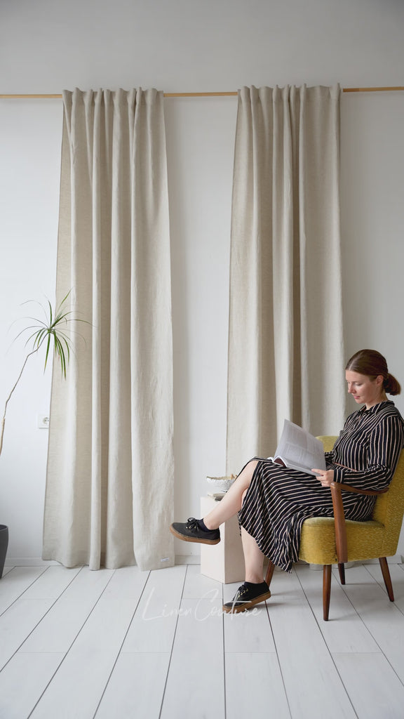 Semi-sheer Natural Light linen curtains that will help you create privacy and coziness at your home. Fitted with tape (multi-functional heading tape) for easy hanging. Easy to hang with tape as you can use hooks, connectors to the track rail, or simply slide hanger through the tape. Compliment any interior with contemporary solid color.
