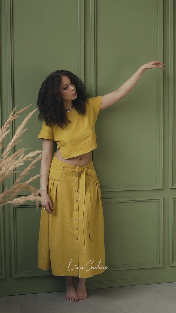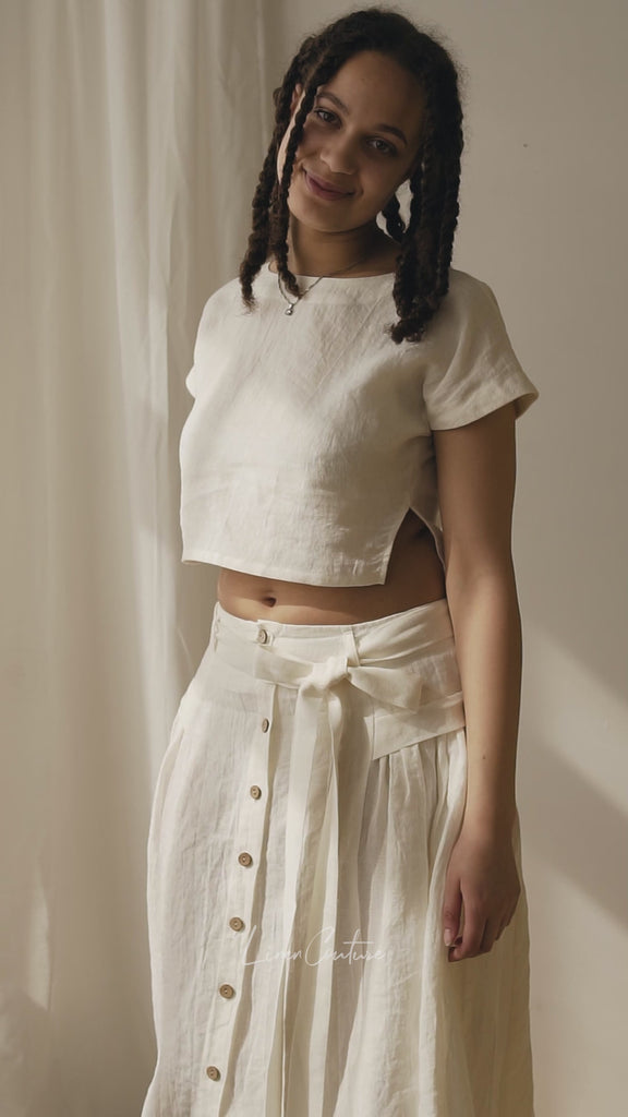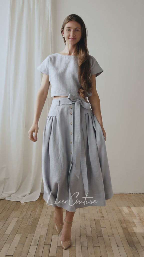 Taormina Set | Linen Crop Top and Flared Midi SkirtLinen Couture