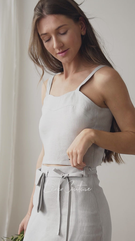 Bella Vita Set in Light Grey | Linen Crop Top and Midi Skirt - Linen Couture