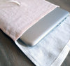 Handmade to order and shipped quickly from Europe. Made from natural softened linen fabric with a tiny closure tie. It can be a custom fit for any 10" to 14" laptop or tablet. Custom size requests are welcome! For custom sizes, be sure to let us know the expected size of the final bag.