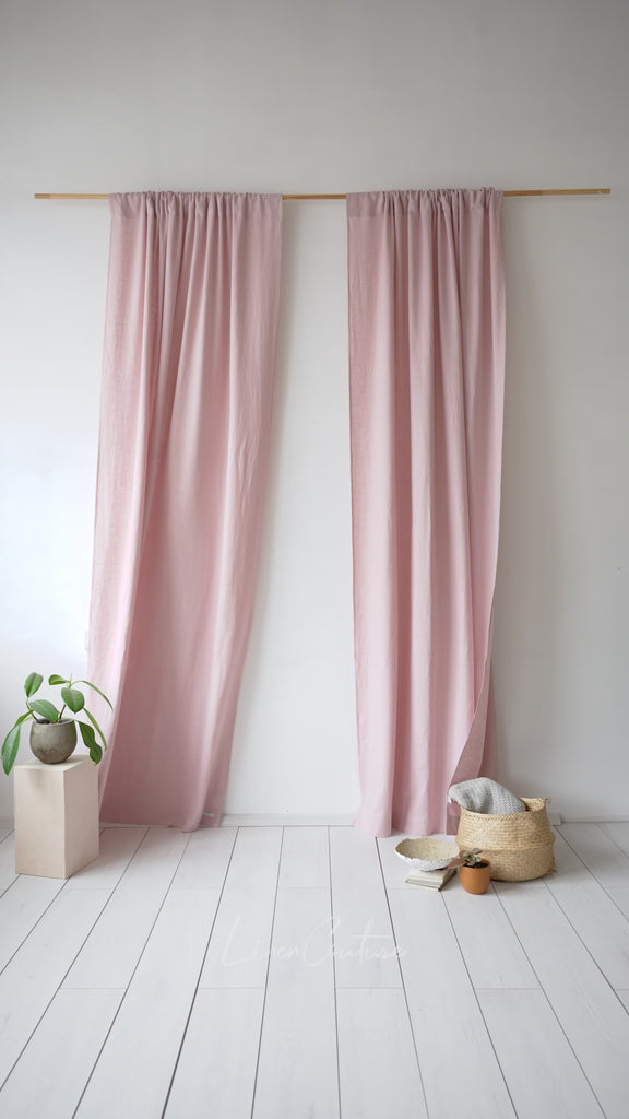 Pale Pink semi-sheer natural light linen curtain that will help you create privacy and coziness at your home. Fitted with a rod pocket for easy hanging. Compliment any interior with contemporary colors.