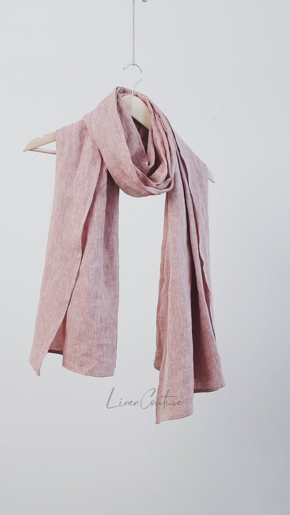 Reddish brown stylish and elegant scarf is made from 100% stonewashed linen. A long one-layer scarf is a perfect accessory for any season. Choose a pop of color for your outfit. They are stone-washed and preshrunk, which made these scarfs super soft to touch and easy to care for.