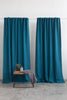 Dark Sea Blue linen curtain with blackout, tape