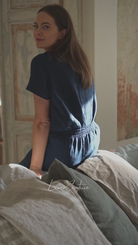 As well as each roll of linen may have a slightly different shade. The shade depends on the linen growing conditions, weather, and humidity. Therefore, our recommendation is to order all the desired items at once.