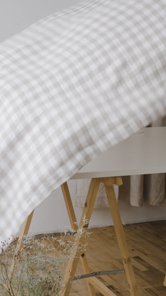 As well as each roll of linen may have a slightly different shade. The shade depends on the linen growing conditions, weather, and humidity. Therefore, our recommendation is to order all the desired items at once.