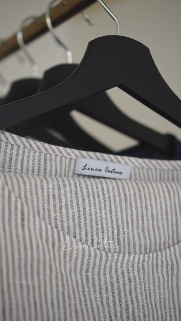 Perfect gift for her, this elegant linen clothing is also great for lounging around the house or even for a casual day out. You can be sure that you will look good and feel comfortable no matter where you go. Plus, the striped beige color adds a subtle touch of sophistication to your outfit.