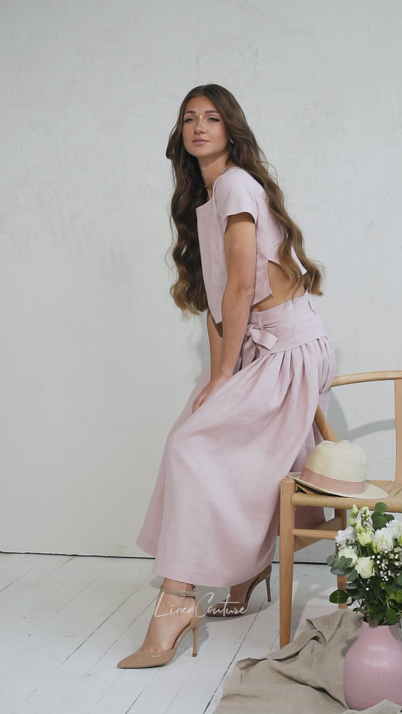 Taormina Pale Pink Linen Crop Top and Midi Skirt Co Ord Set